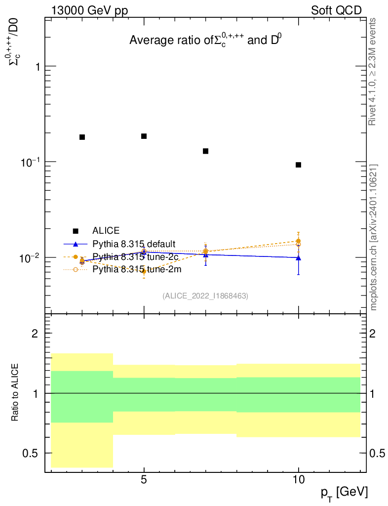 Soft QCD (inelastic) : Identified Particles : Ratios : Σc0,+,++/D0 vs pT