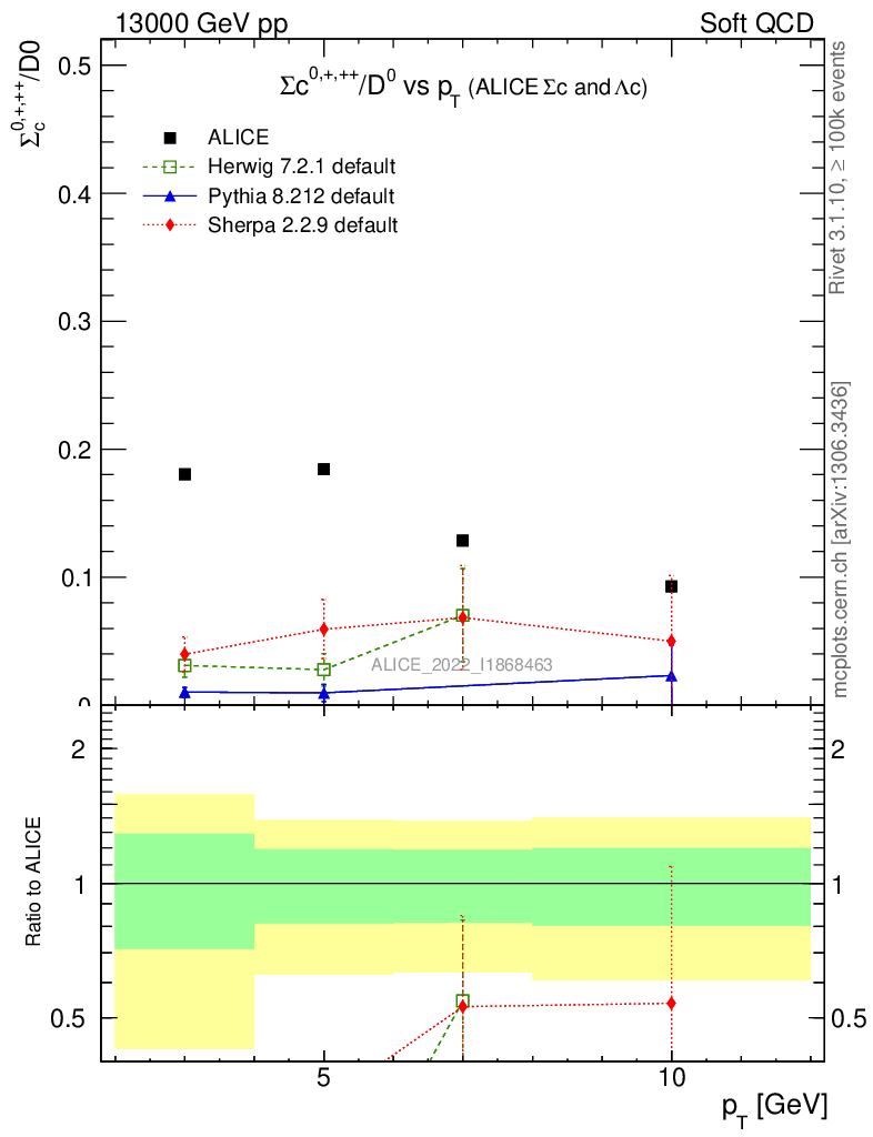 Soft QCD (inelastic) : Identified Particles : Ratios : Σc0,+,++/D0 vs pT