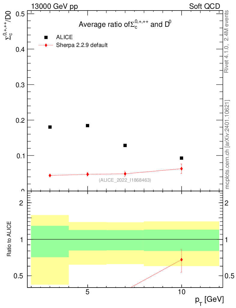 Soft QCD (inelastic) : Identified Particles : Ratios : Σc0,+,++/D0 vs pT