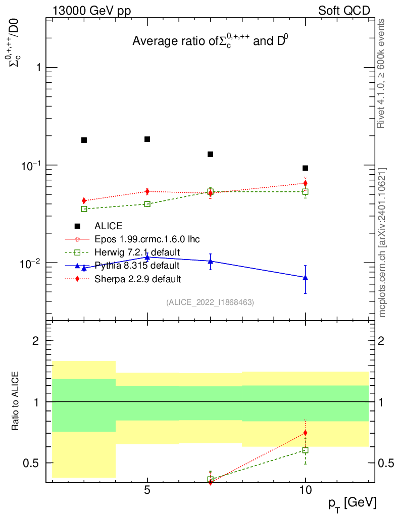 Soft QCD (inelastic) : Identified Particles : Ratios : Σc0,+,++/D0 vs pT