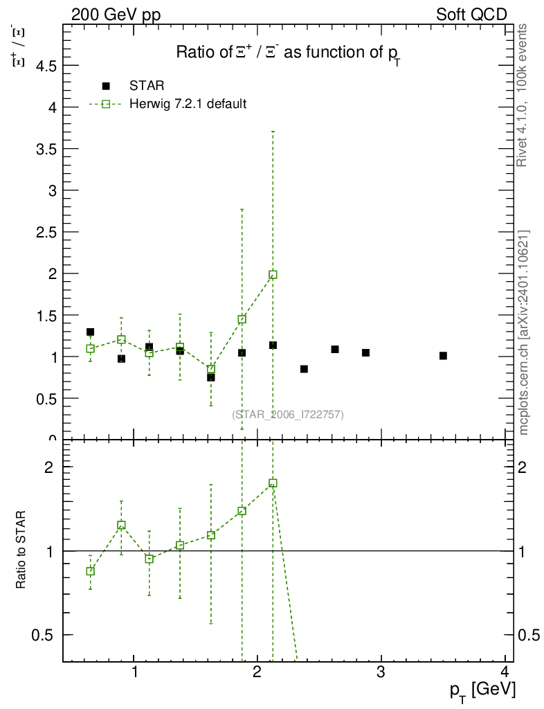 Soft QCD (inelastic) : Identified Particles : Ratios : Ξ+/Ξ- vs pT