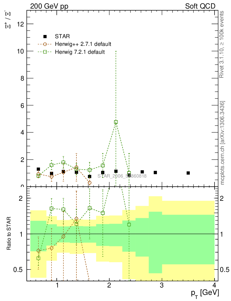 Soft QCD (inelastic) : Identified Particles : Ratios : Ξ+/Ξ- vs pT