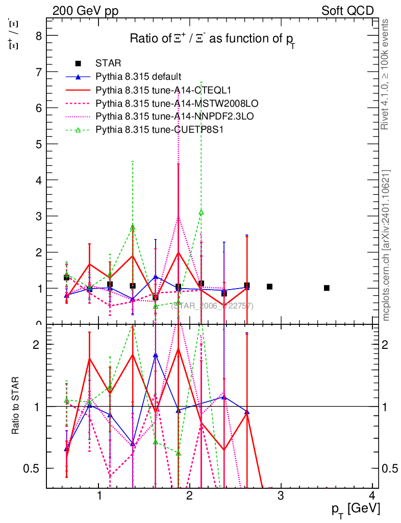 Soft QCD (inelastic) : Identified Particles : Ratios : Ξ+/Ξ- vs pT