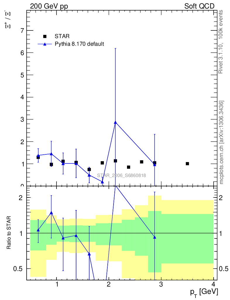 Soft QCD (inelastic) : Identified Particles : Ratios : Ξ+/Ξ- vs pT