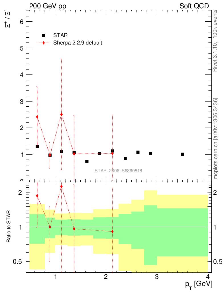 Soft QCD (inelastic) : Identified Particles : Ratios : Ξ+/Ξ- vs pT