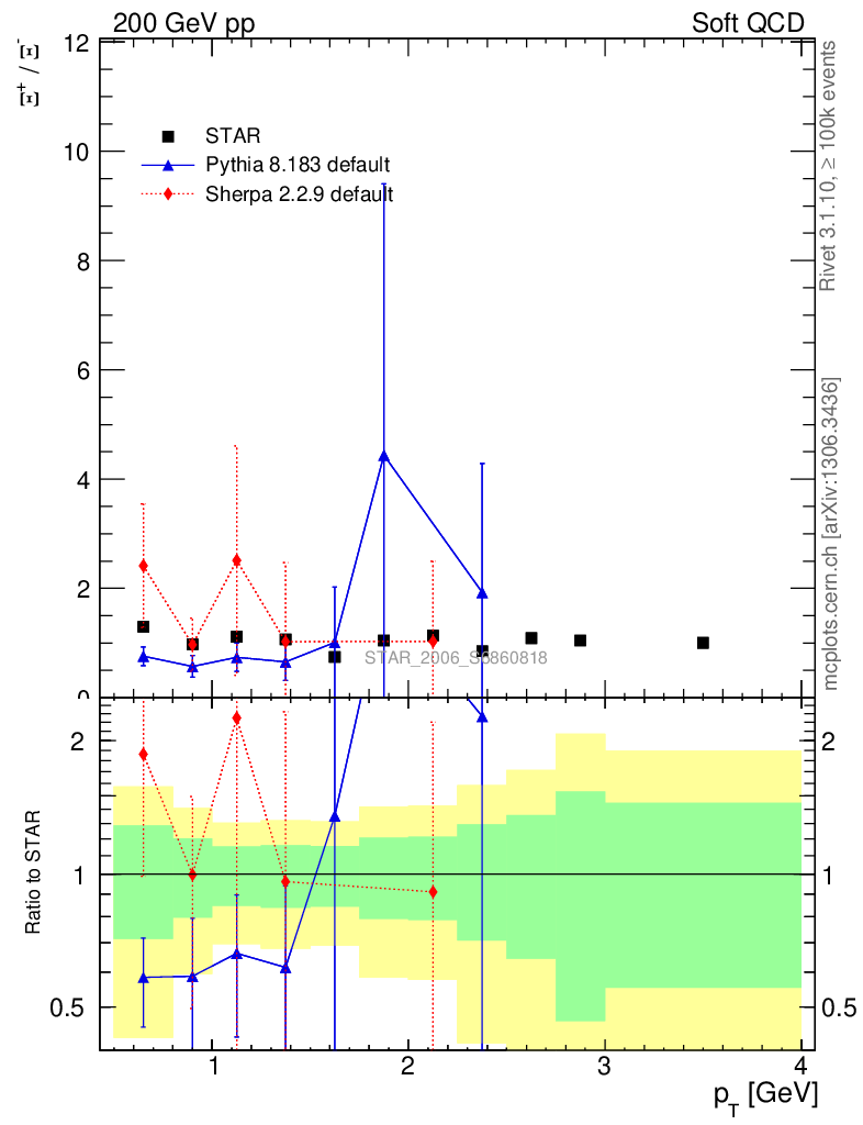Soft QCD (inelastic) : Identified Particles : Ratios : Ξ+/Ξ- vs pT
