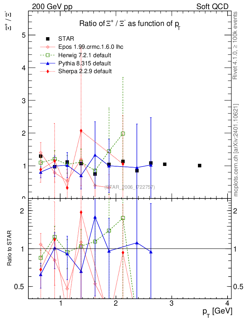 Soft QCD (inelastic) : Identified Particles : Ratios : Ξ+/Ξ- vs pT