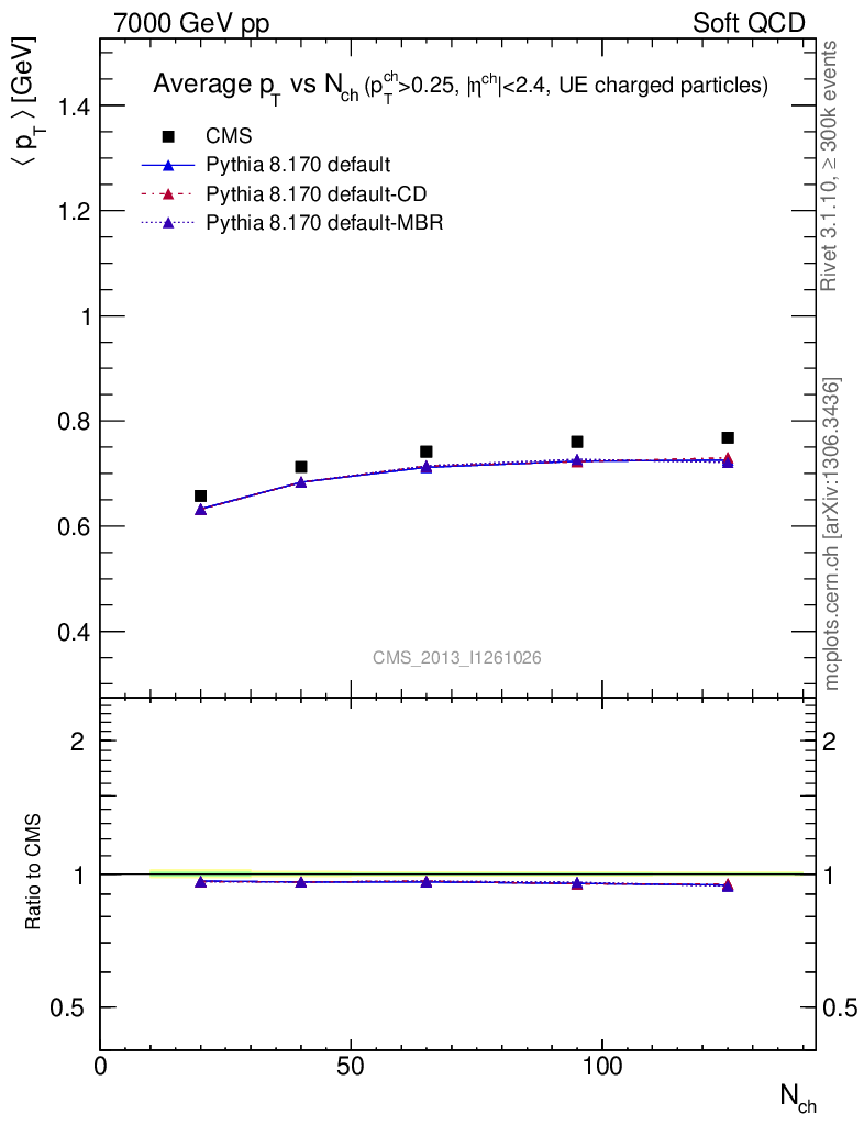 Soft QCD (inelastic) : <pT> vs Nch