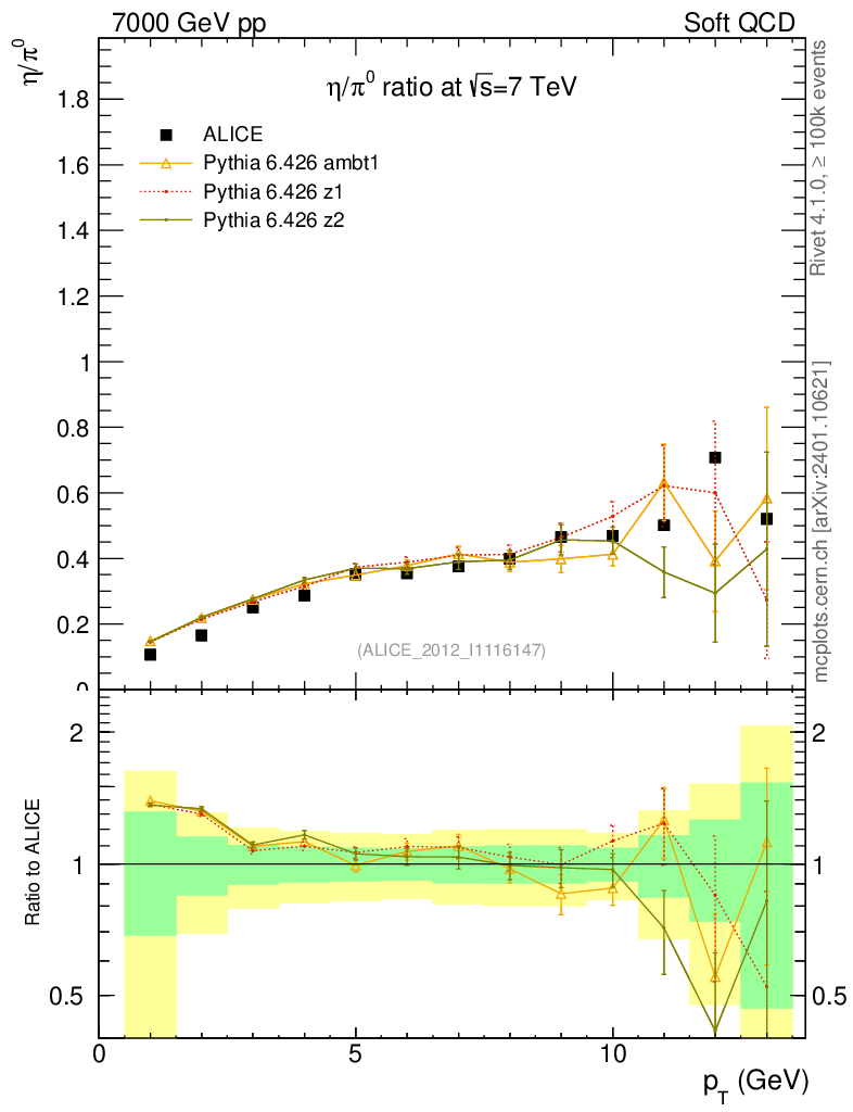 Soft QCD (inelastic) : Identified Particles : Ratios : η/π0 vs pT