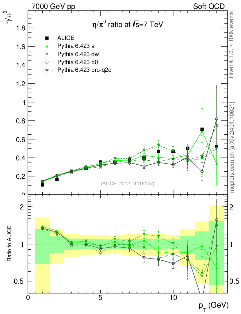 Soft QCD (inelastic) : Identified Particles : Ratios : η/π0 vs pT