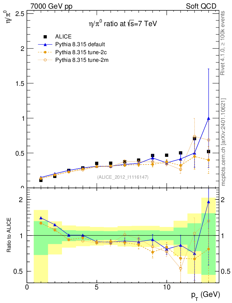 Soft QCD (inelastic) : Identified Particles : Ratios : η/π0 vs pT