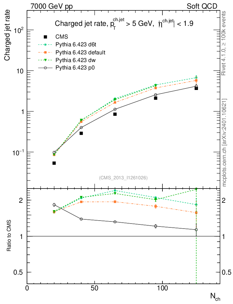 Soft QCD (inelastic) : Jet Multiplicities : Nj vs Nch