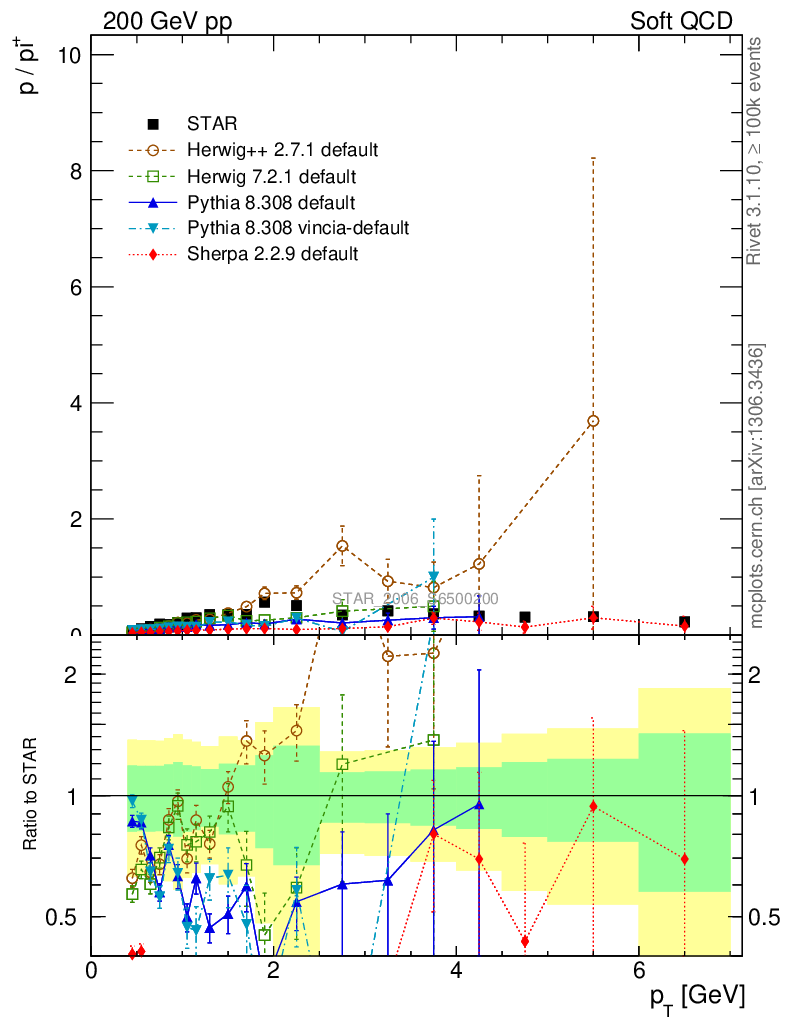 Soft QCD (inelastic) : Identified Particles : Ratios : p/π+ vs pT
