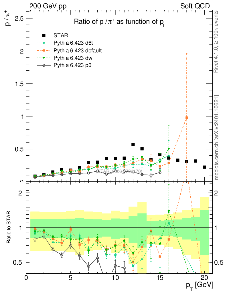 Soft QCD (inelastic) : Identified Particles : Ratios : p/π+ vs pT