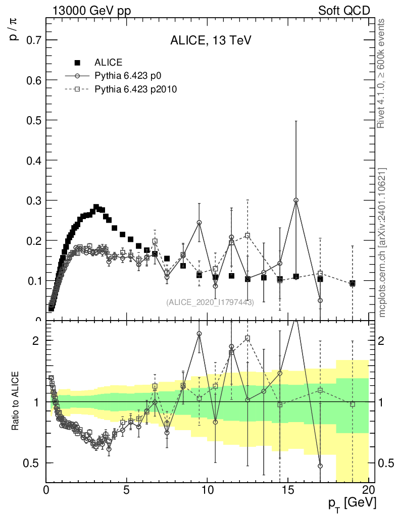 Soft QCD (inelastic) : Identified Particles : Ratios : p/π+ vs pT