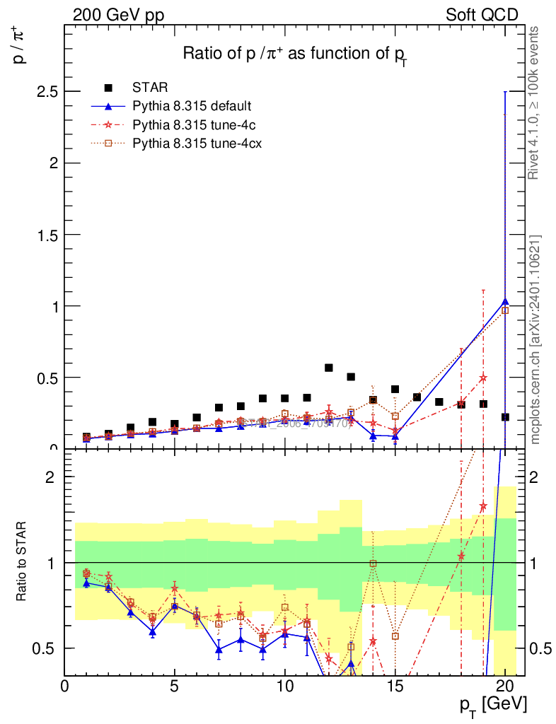 Soft QCD (inelastic) : Identified Particles : Ratios : p/π+ vs pT