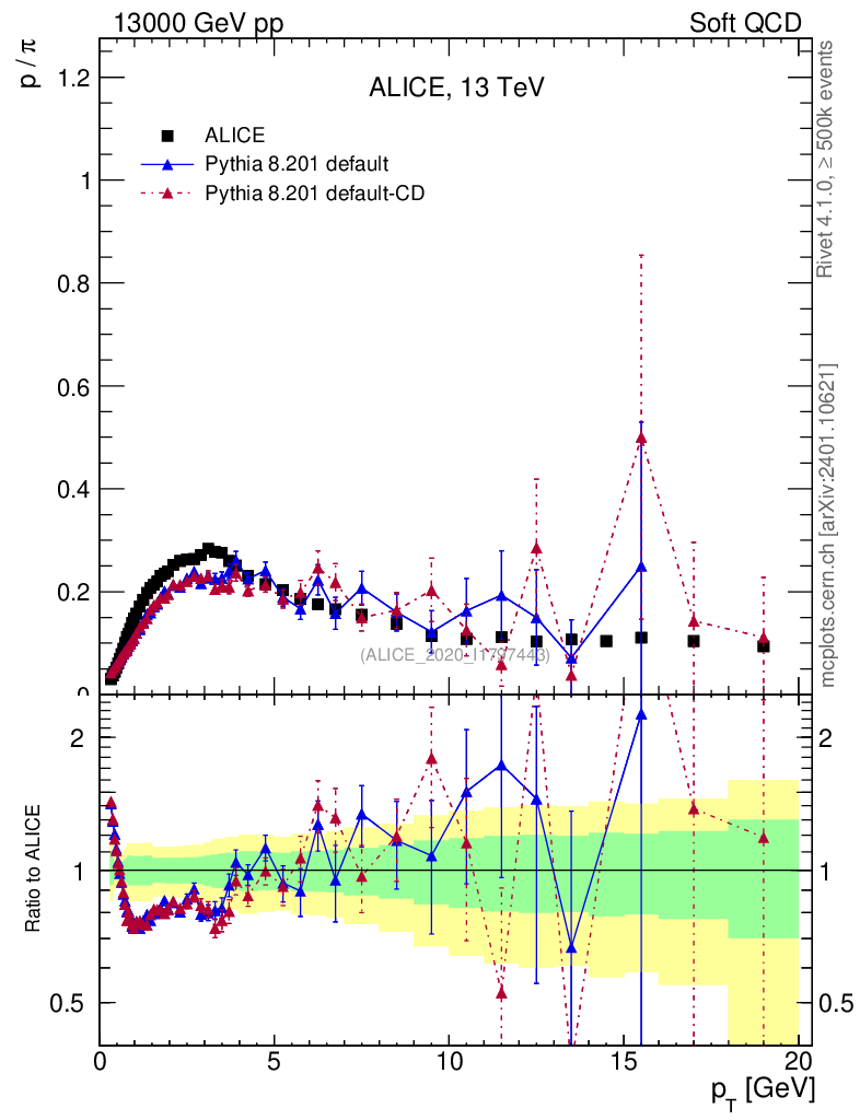 Soft QCD (inelastic) : Identified Particles : Ratios : p/π+ vs pT