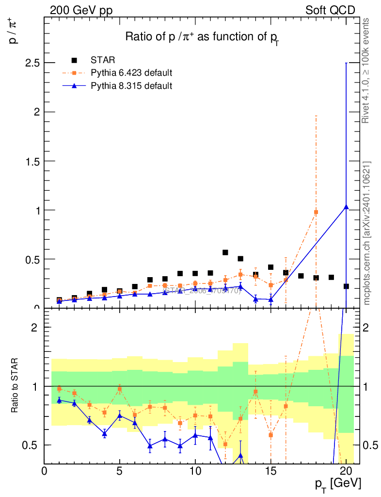 Soft QCD (inelastic) : Identified Particles : Ratios : p/π+ vs pT