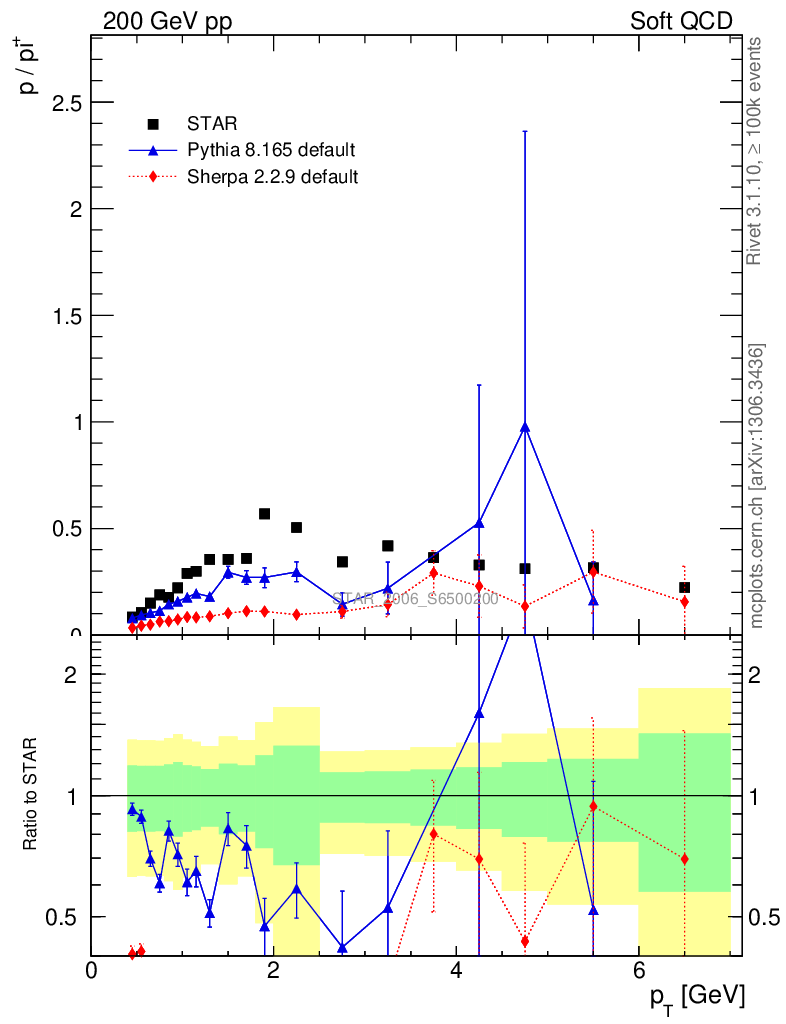 Soft QCD (inelastic) : Identified Particles : Ratios : p/π+ vs pT