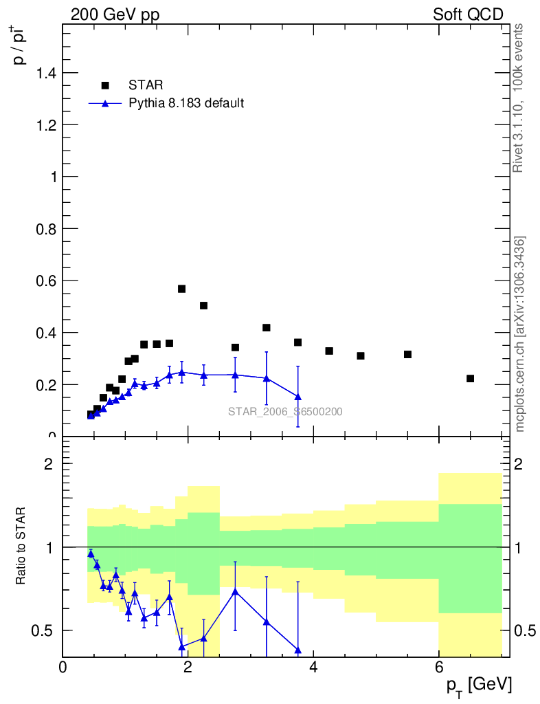 Soft QCD (inelastic) : Identified Particles : Ratios : p/π+ vs pT