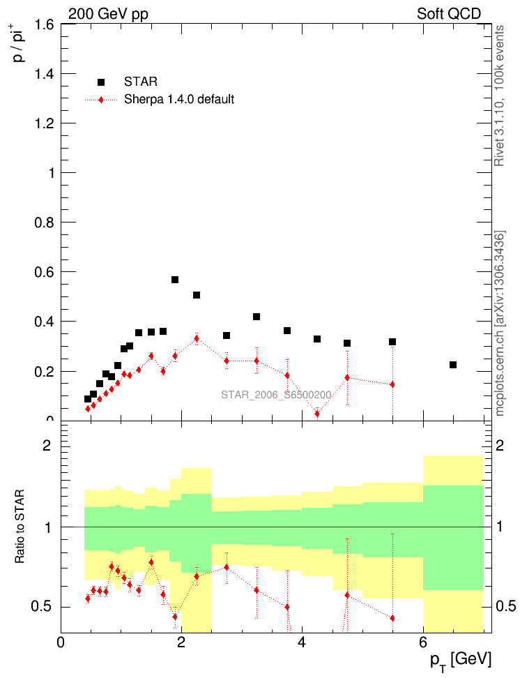 Soft QCD (inelastic) : Identified Particles : Ratios : p/π+ vs pT