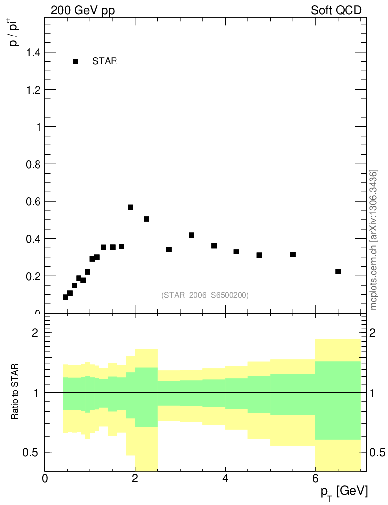 Soft QCD (inelastic) : Identified Particles : Ratios : p/π+ vs pT