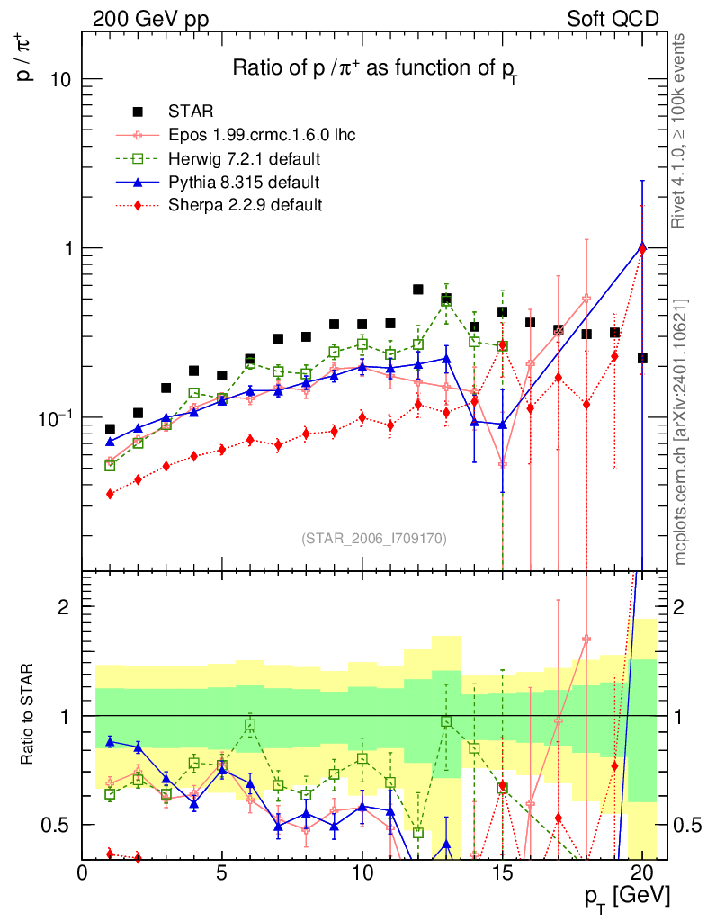 Soft QCD (inelastic) : Identified Particles : Ratios : p/π+ vs pT