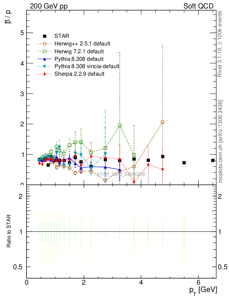 Soft QCD (inelastic) : Identified Particles : Ratios : pbar/p vs pT