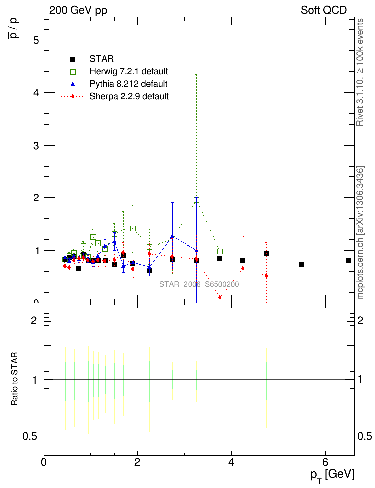 Soft QCD (inelastic) : Identified Particles : Ratios : pbar/p vs pT