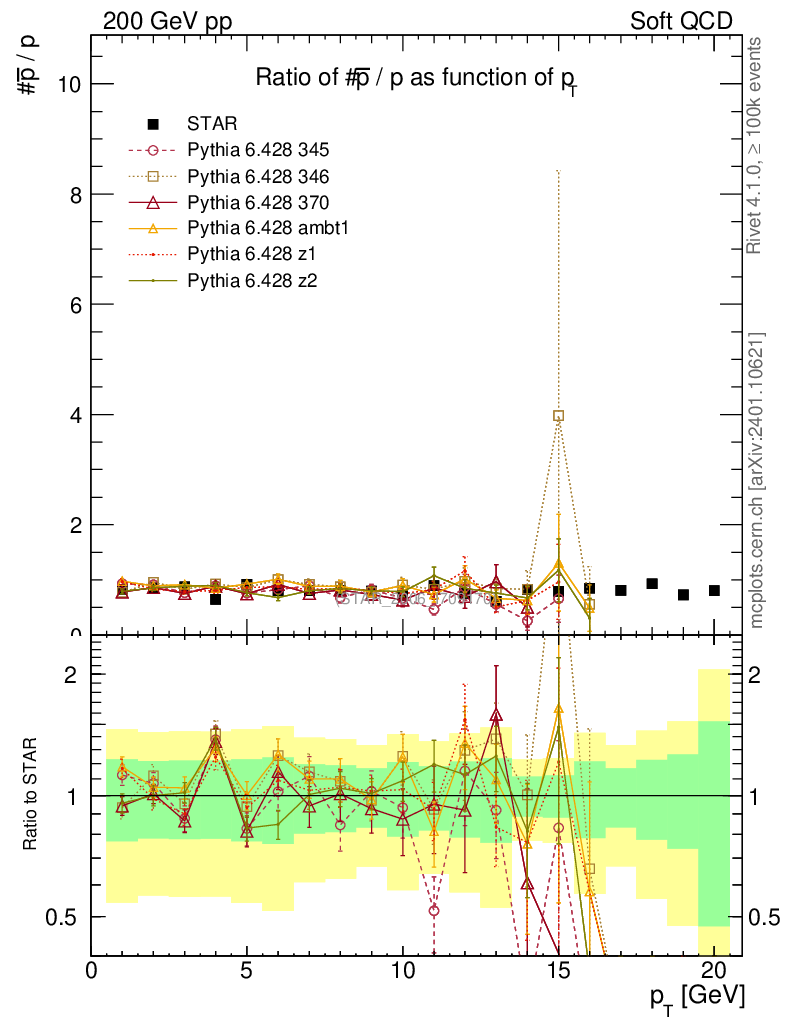 Soft QCD (inelastic) : Identified Particles : Ratios : pbar/p vs pT