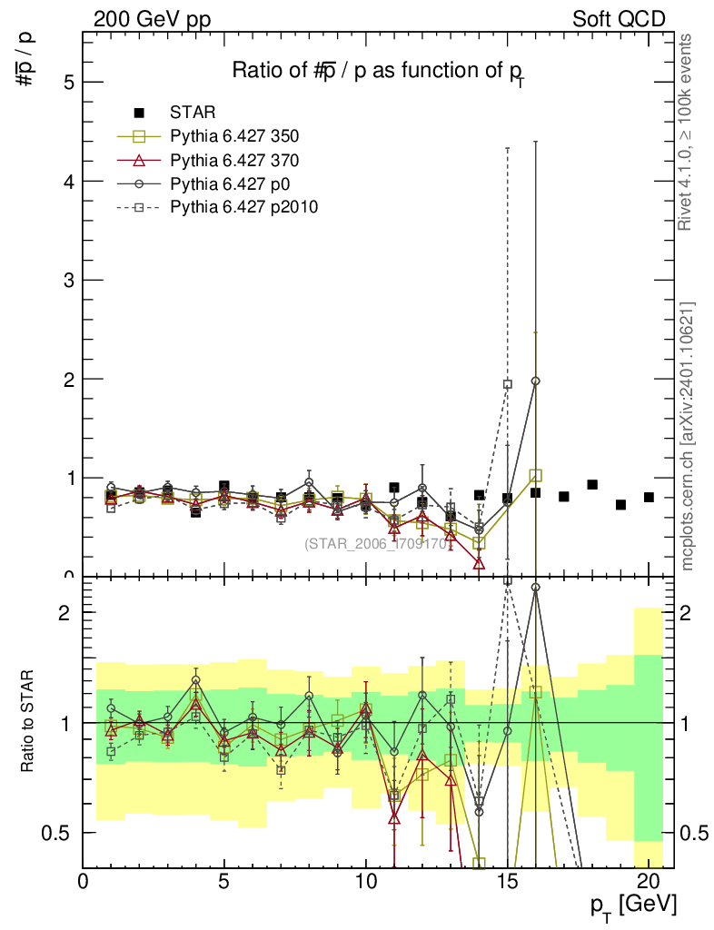 Soft QCD (inelastic) : Identified Particles : Ratios : pbar/p vs pT
