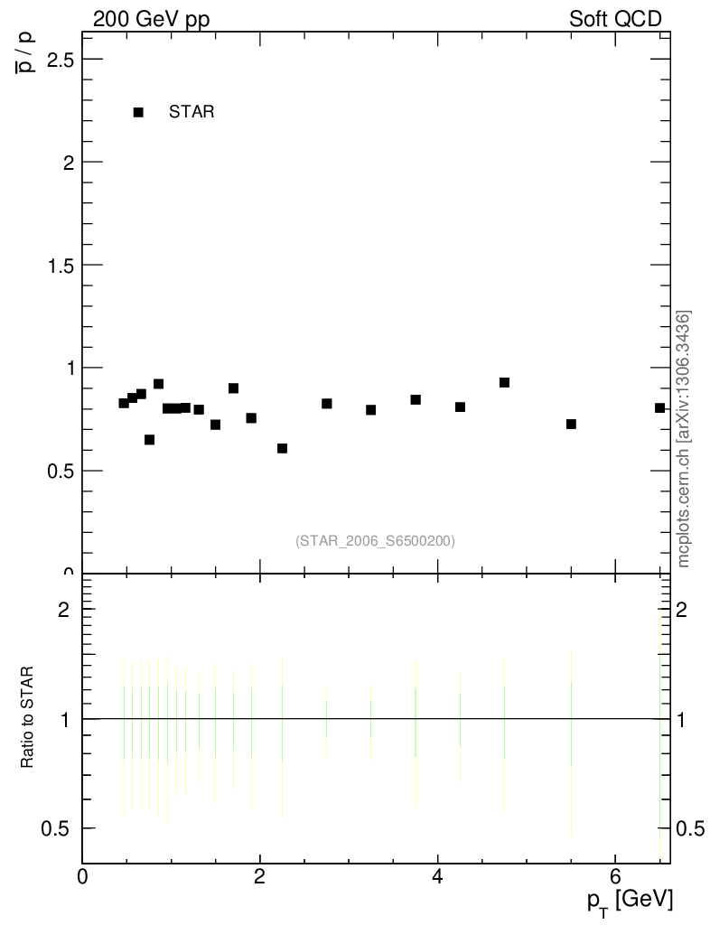 Soft QCD (inelastic) : Identified Particles : Ratios : pbar/p vs pT