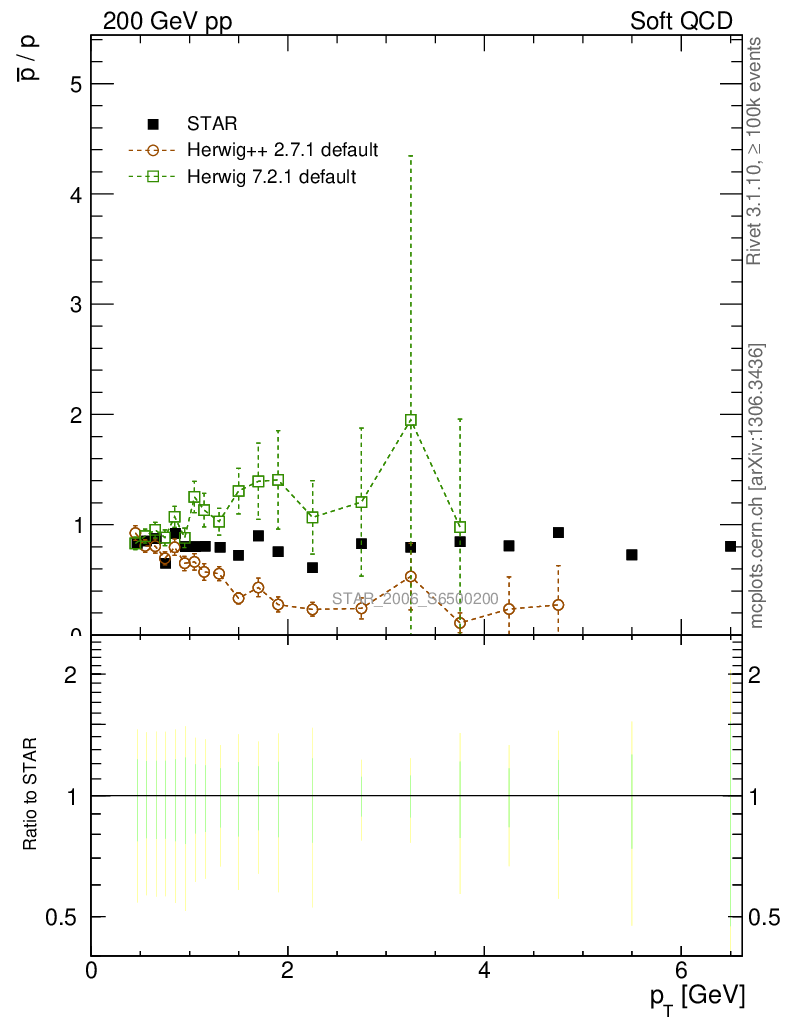 Soft QCD (inelastic) : Identified Particles : Ratios : pbar/p vs pT