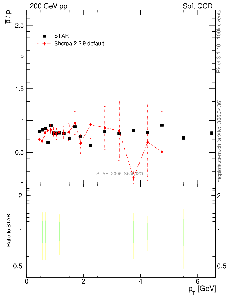 Soft QCD (inelastic) : Identified Particles : Ratios : pbar/p vs pT