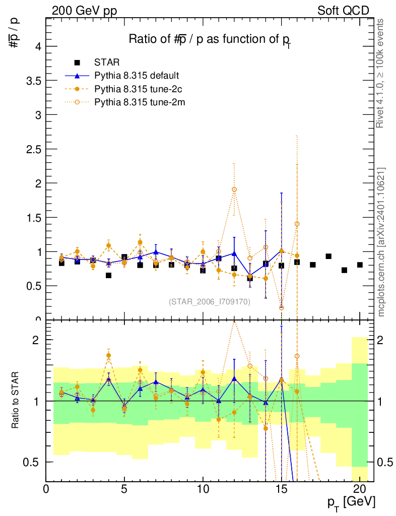 Soft QCD (inelastic) : Identified Particles : Ratios : pbar/p vs pT