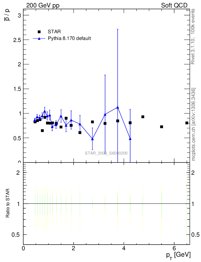 Soft QCD (inelastic) : Identified Particles : Ratios : pbar/p vs pT