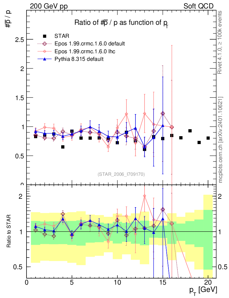Soft QCD (inelastic) : Identified Particles : Ratios : pbar/p vs pT