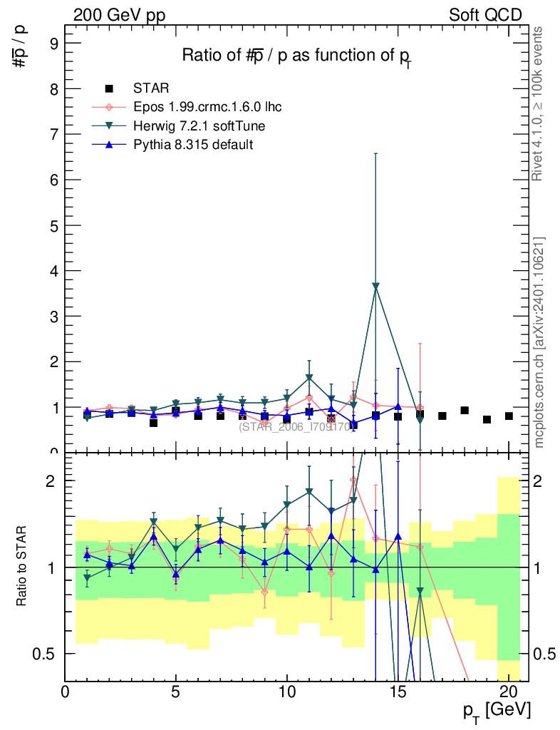 Soft QCD (inelastic) : Identified Particles : Ratios : pbar/p vs pT