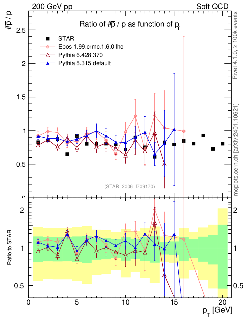 Soft QCD (inelastic) : Identified Particles : Ratios : pbar/p vs pT