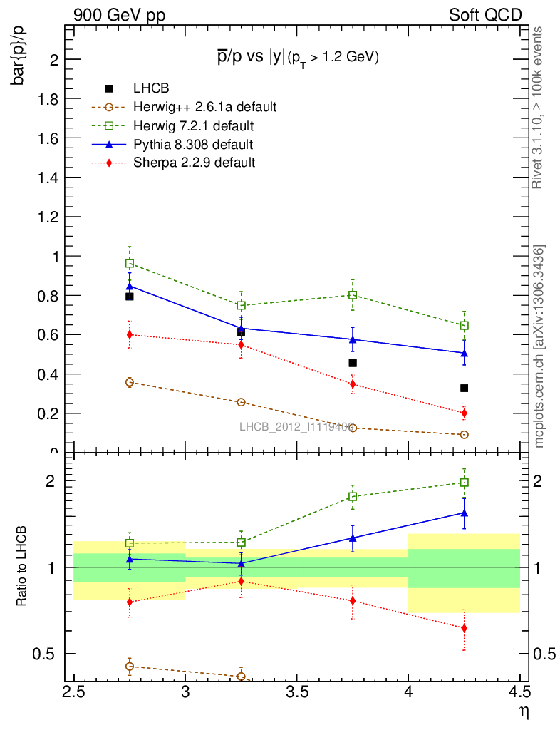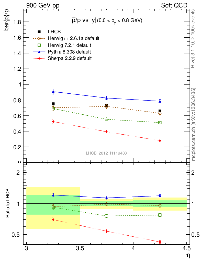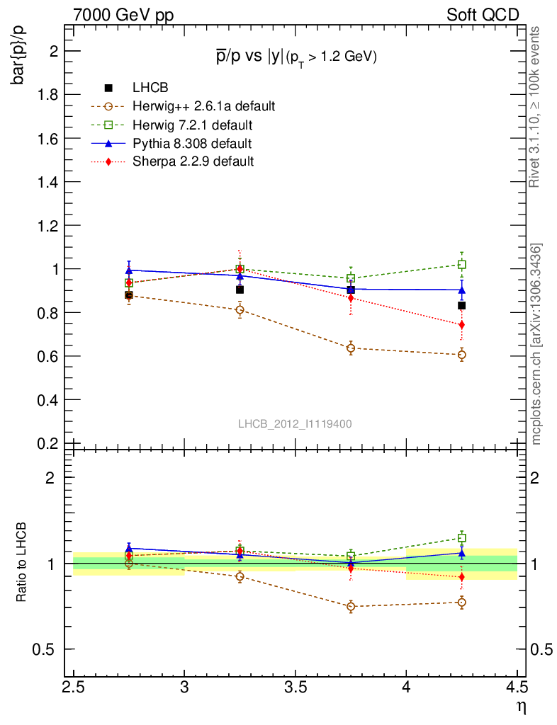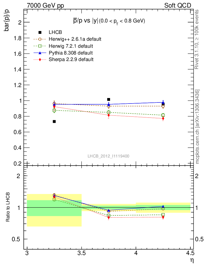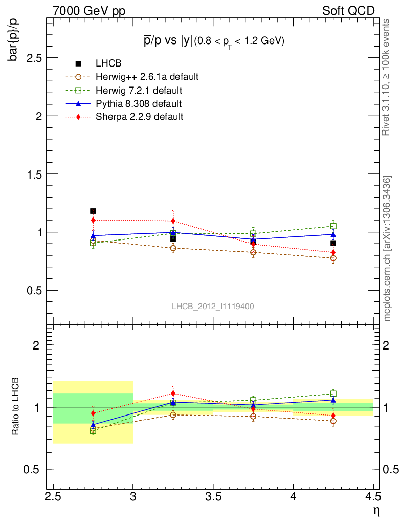 Soft QCD (inelastic) : Identified Particles : Ratios : pbar/p vs |y|