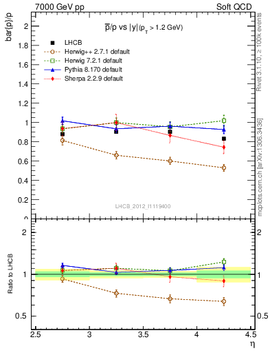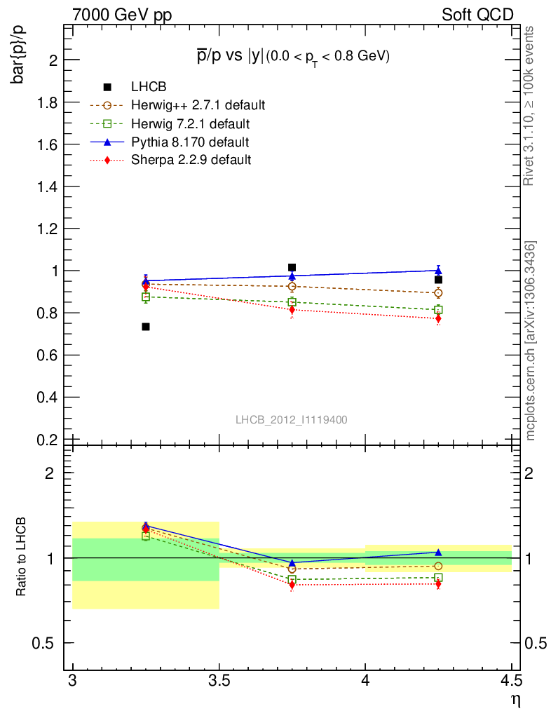 Soft QCD (inelastic) : Identified Particles : Ratios : pbar/p vs |y|