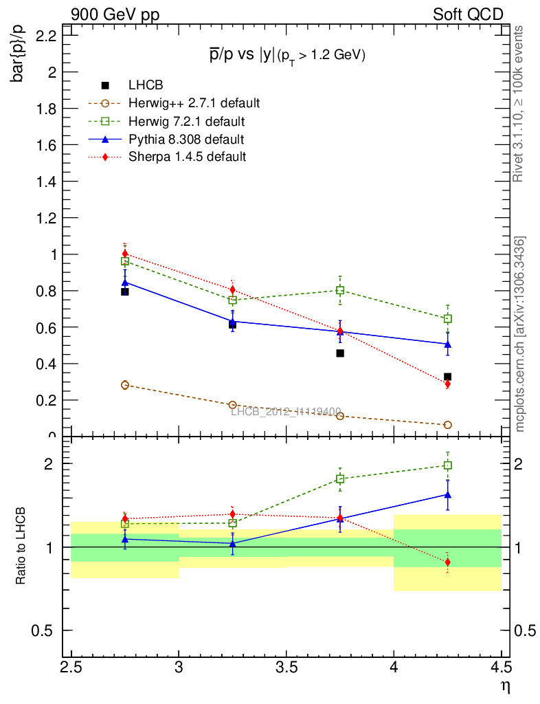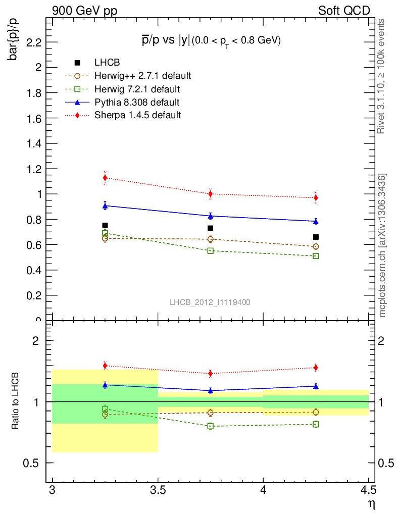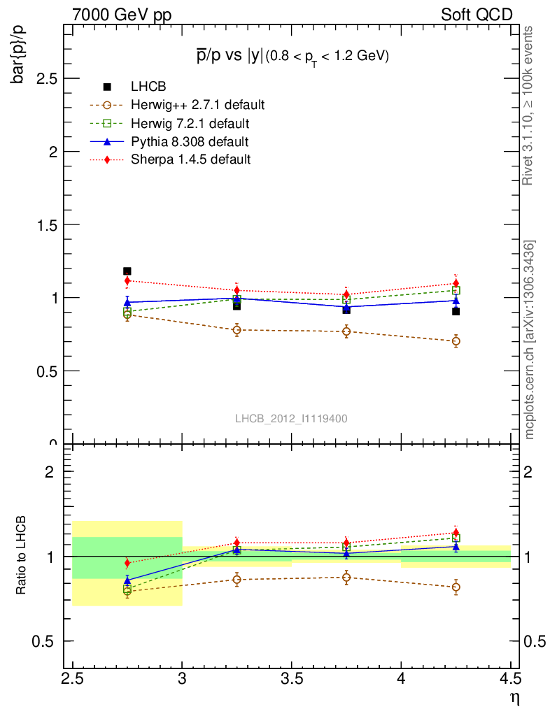 Soft QCD (inelastic) : Identified Particles : Ratios : pbar/p vs |y|
