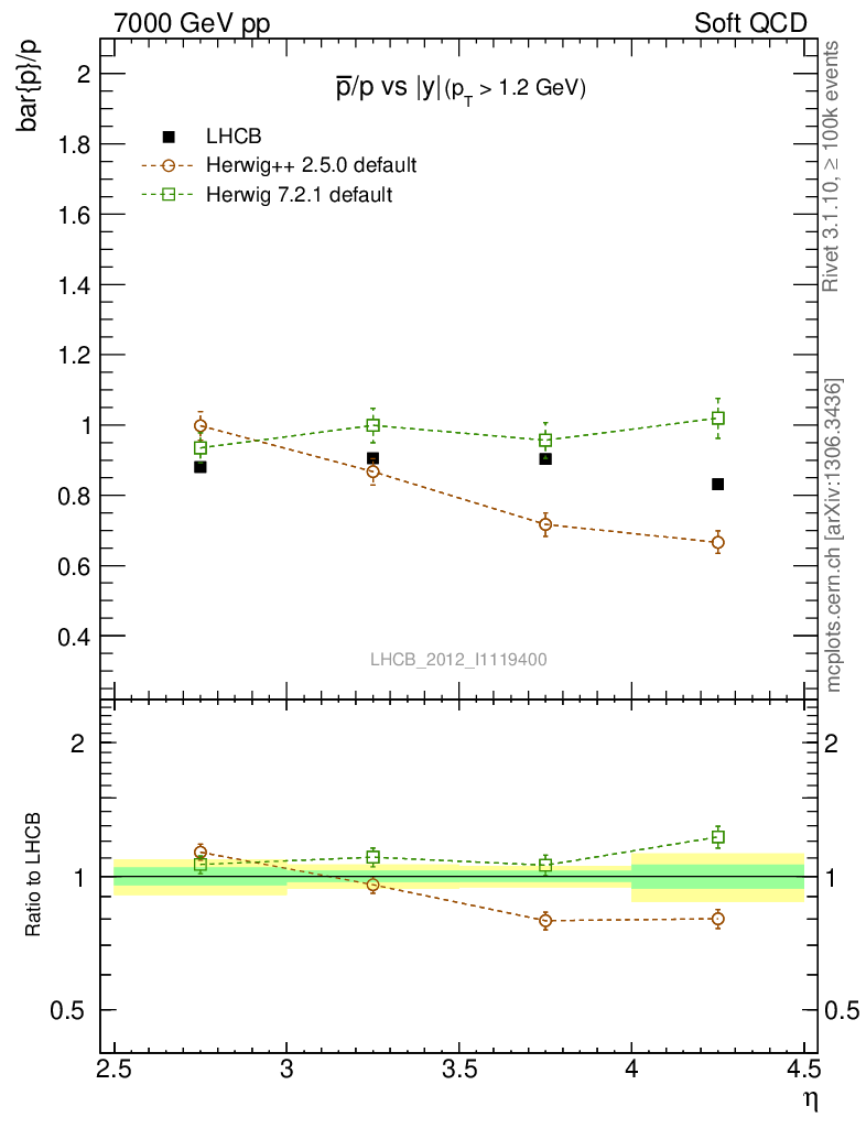 Soft QCD (inelastic) : Identified Particles : Ratios : pbar/p vs |y|