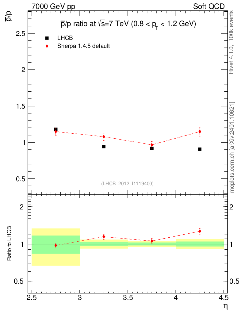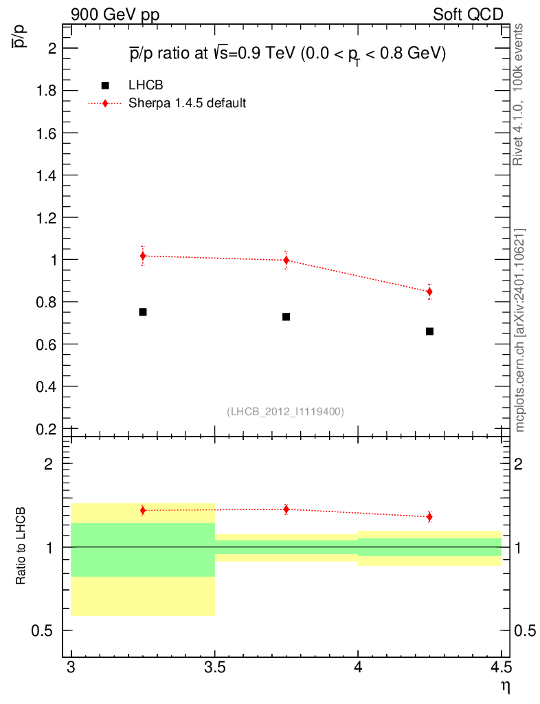 Soft QCD (inelastic) : Identified Particles : Ratios : pbar/p vs |y|