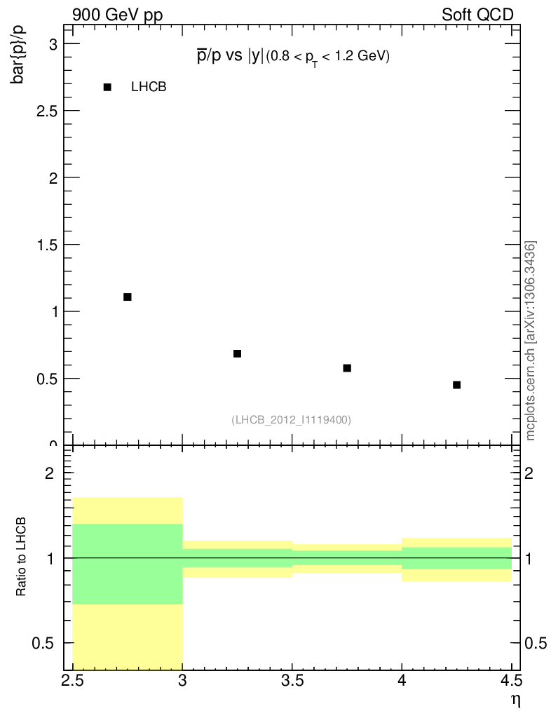 Soft QCD (inelastic) : Identified Particles : Ratios : pbar/p vs |y|