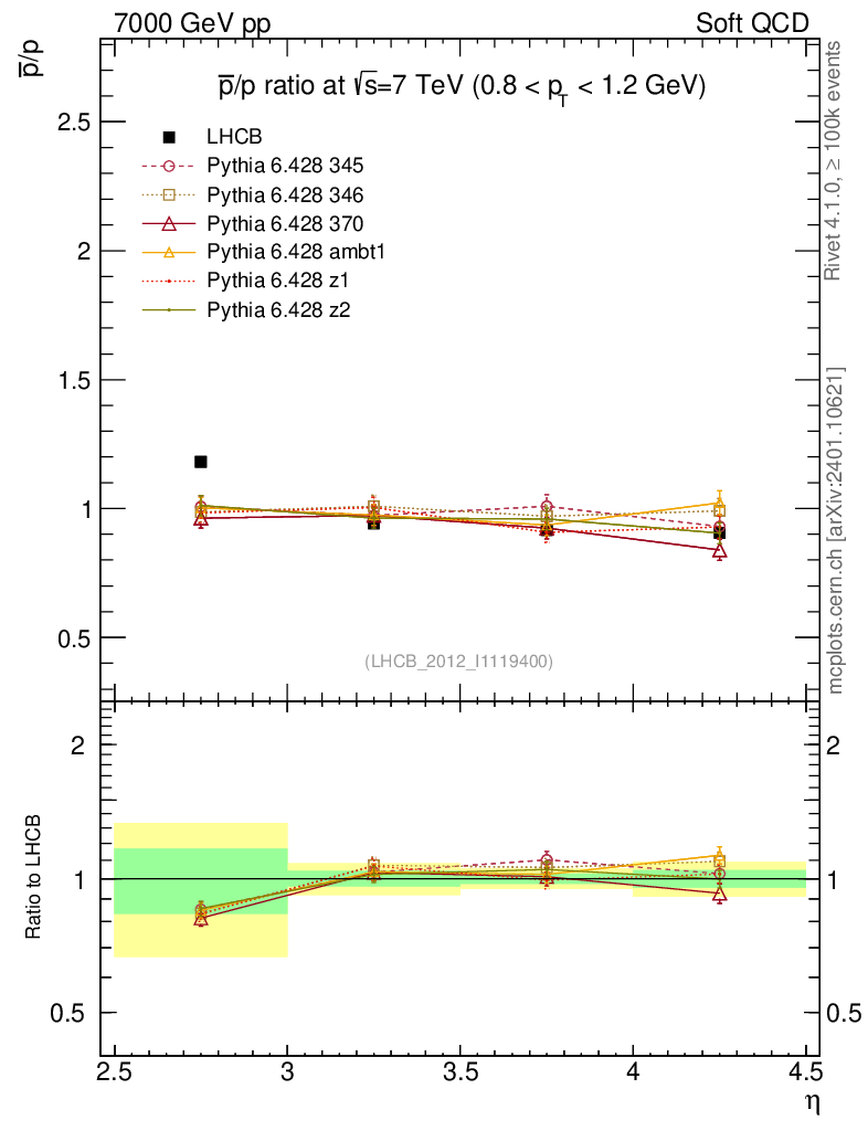 Soft QCD (inelastic) : Identified Particles : Ratios : pbar/p vs |y|