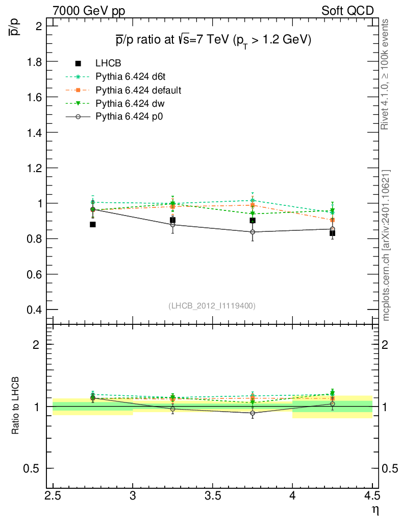 Soft QCD (inelastic) : Identified Particles : Ratios : pbar/p vs |y|