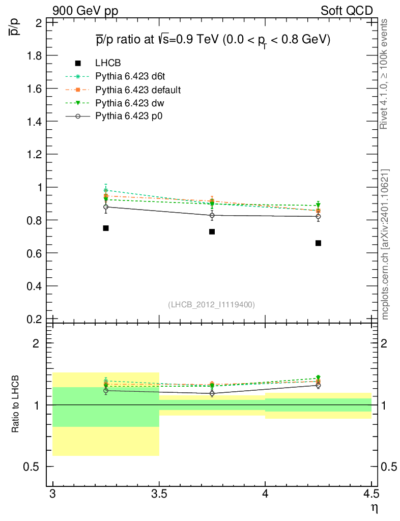 Soft QCD (inelastic) : Identified Particles : Ratios : pbar/p vs |y|
