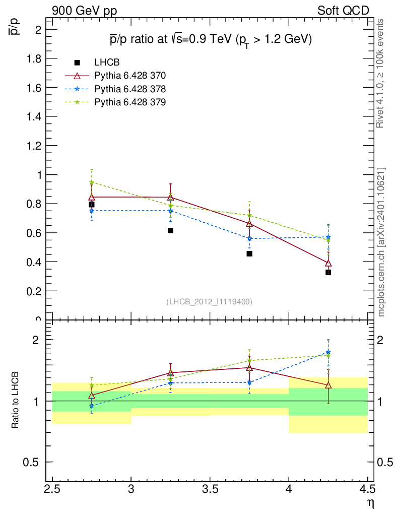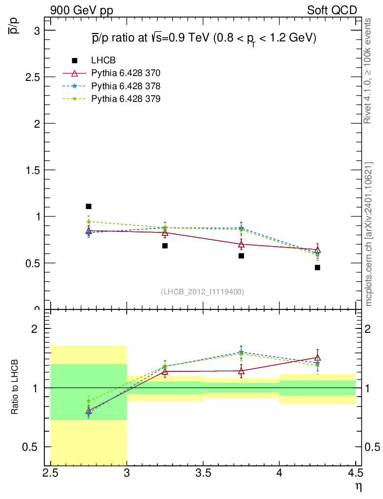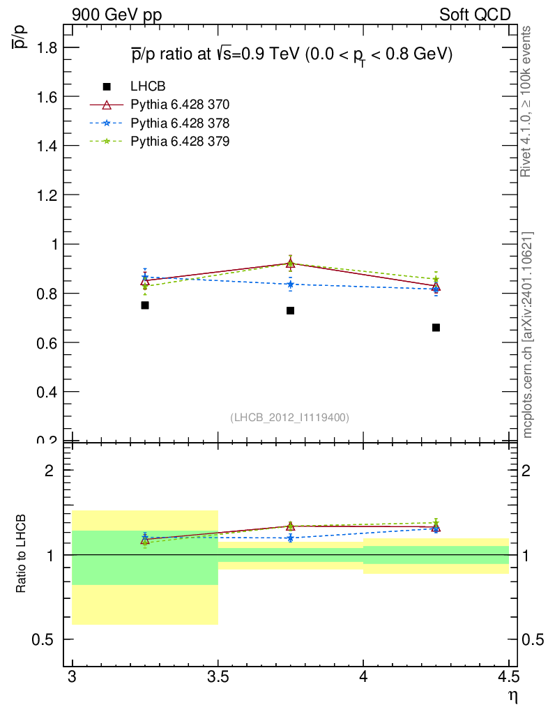 Soft QCD (inelastic) : Identified Particles : Ratios : pbar/p vs |y|