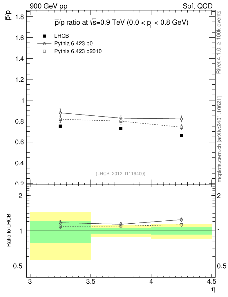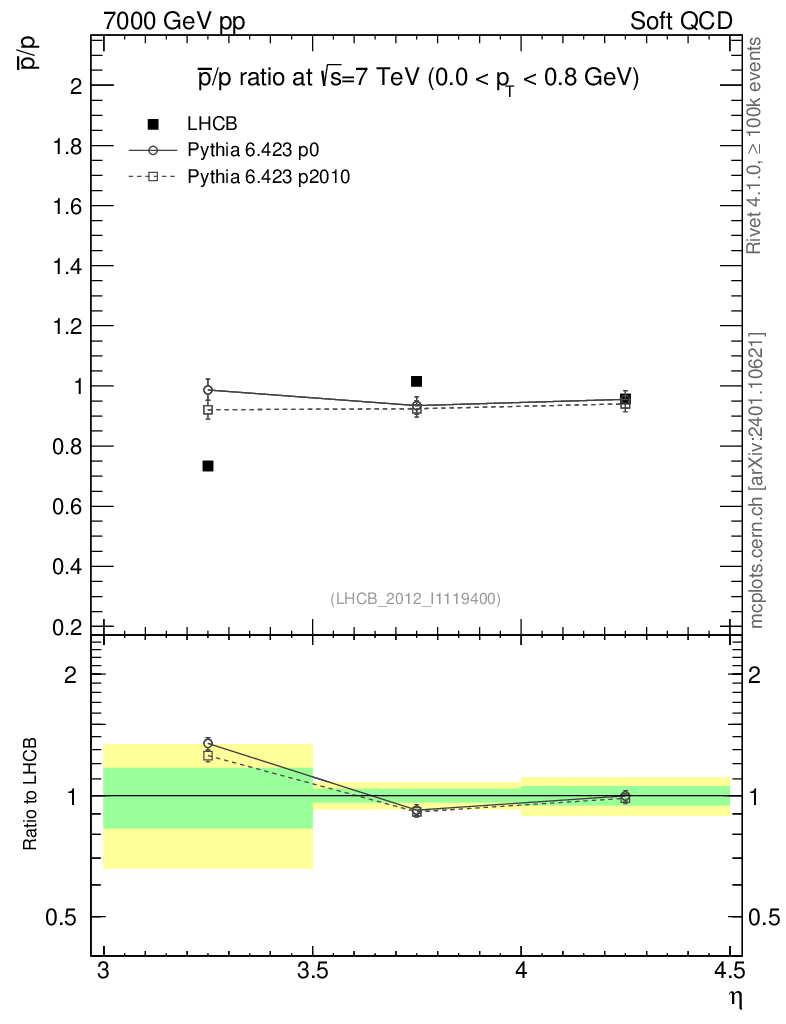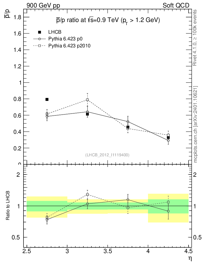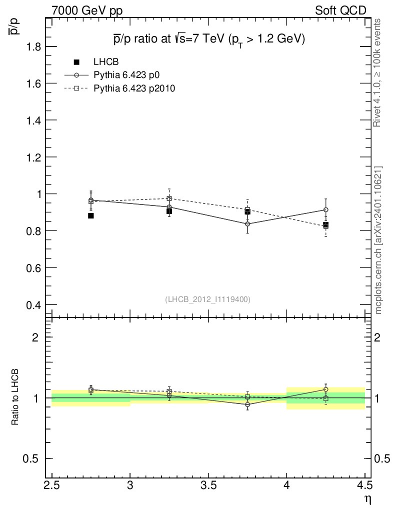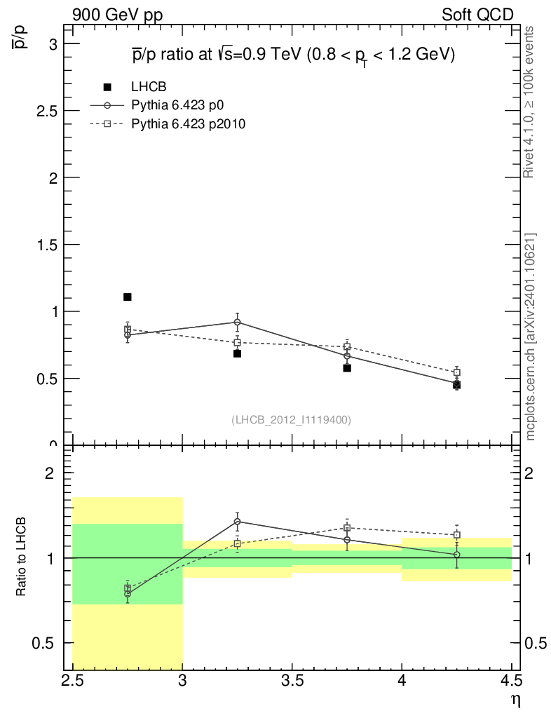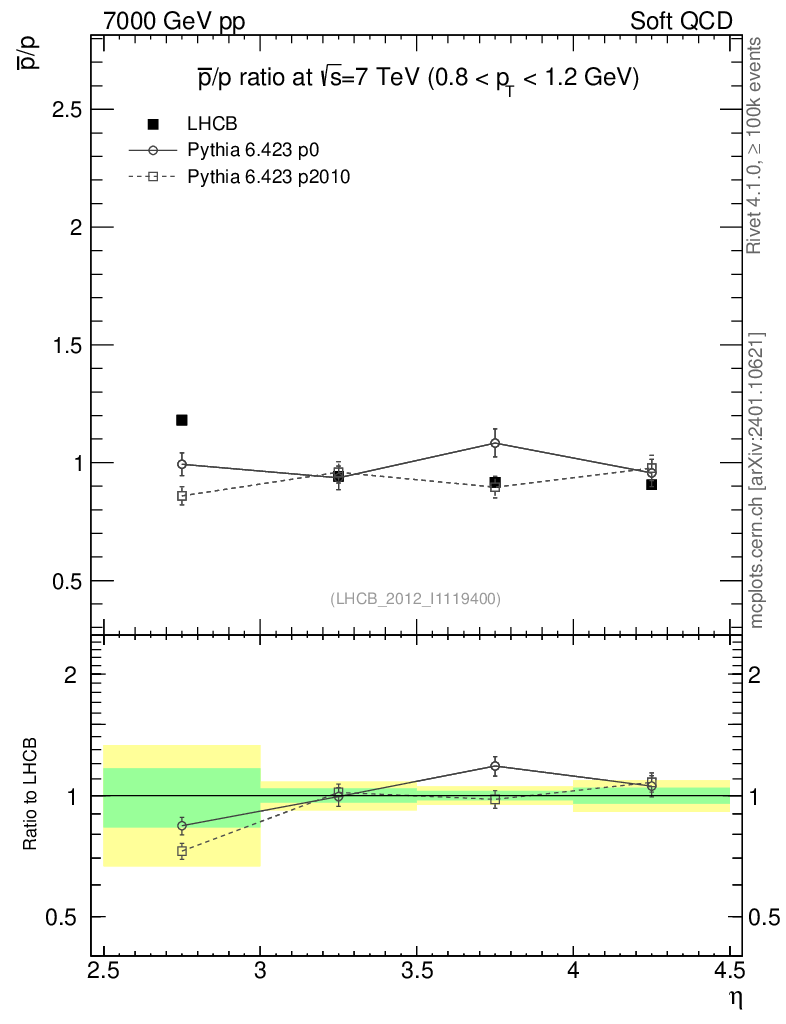 Soft QCD (inelastic) : Identified Particles : Ratios : pbar/p vs |y|